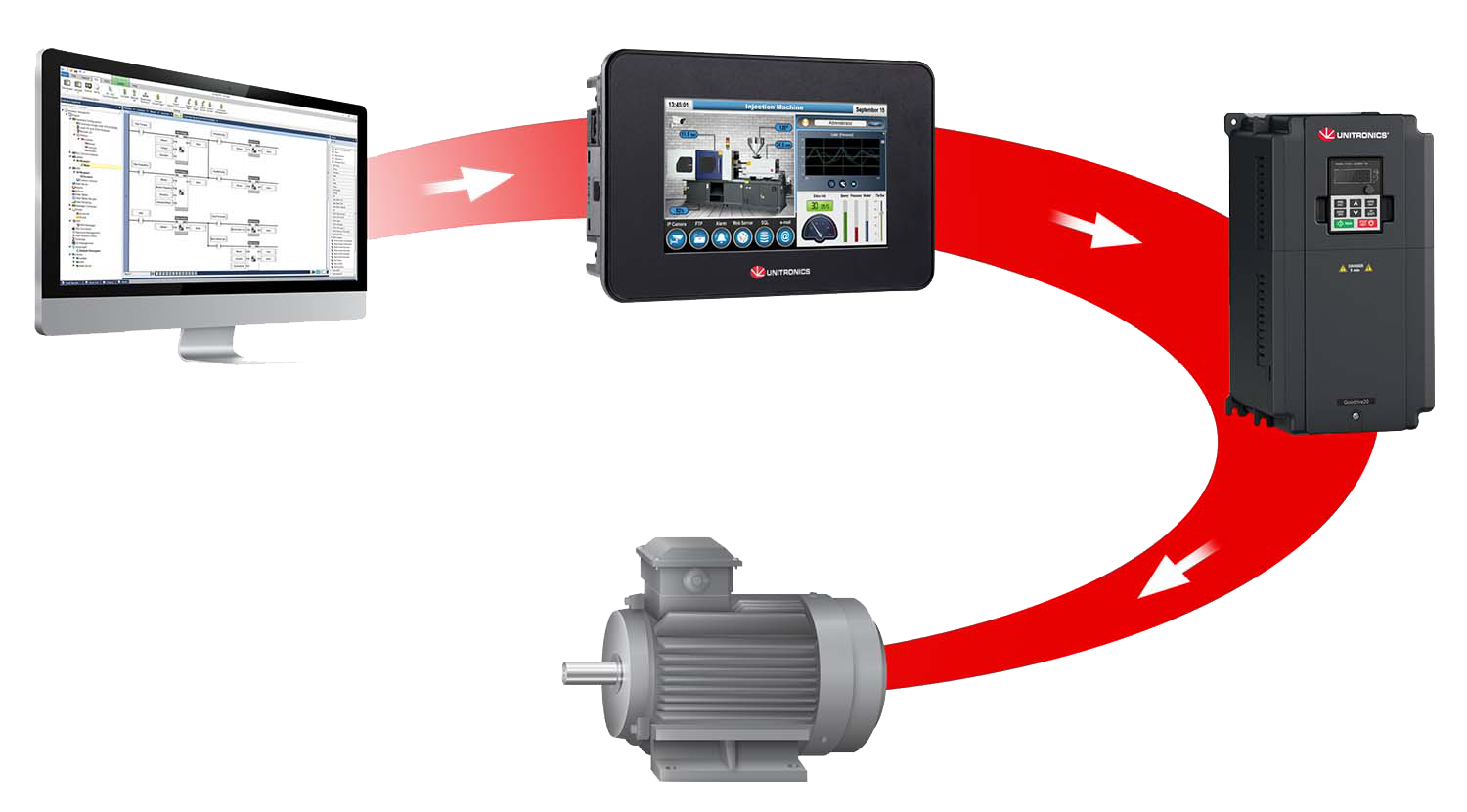 Les variateurs de fréquence Unitronics offrent des options pour des variateurs de fréquence monophasés et triphasés, allant de 0,4 kW jusqu'à 500 kW.