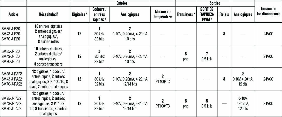 3 Le nombre total de sorties digitales indiqué tient compte des sorties rapides.