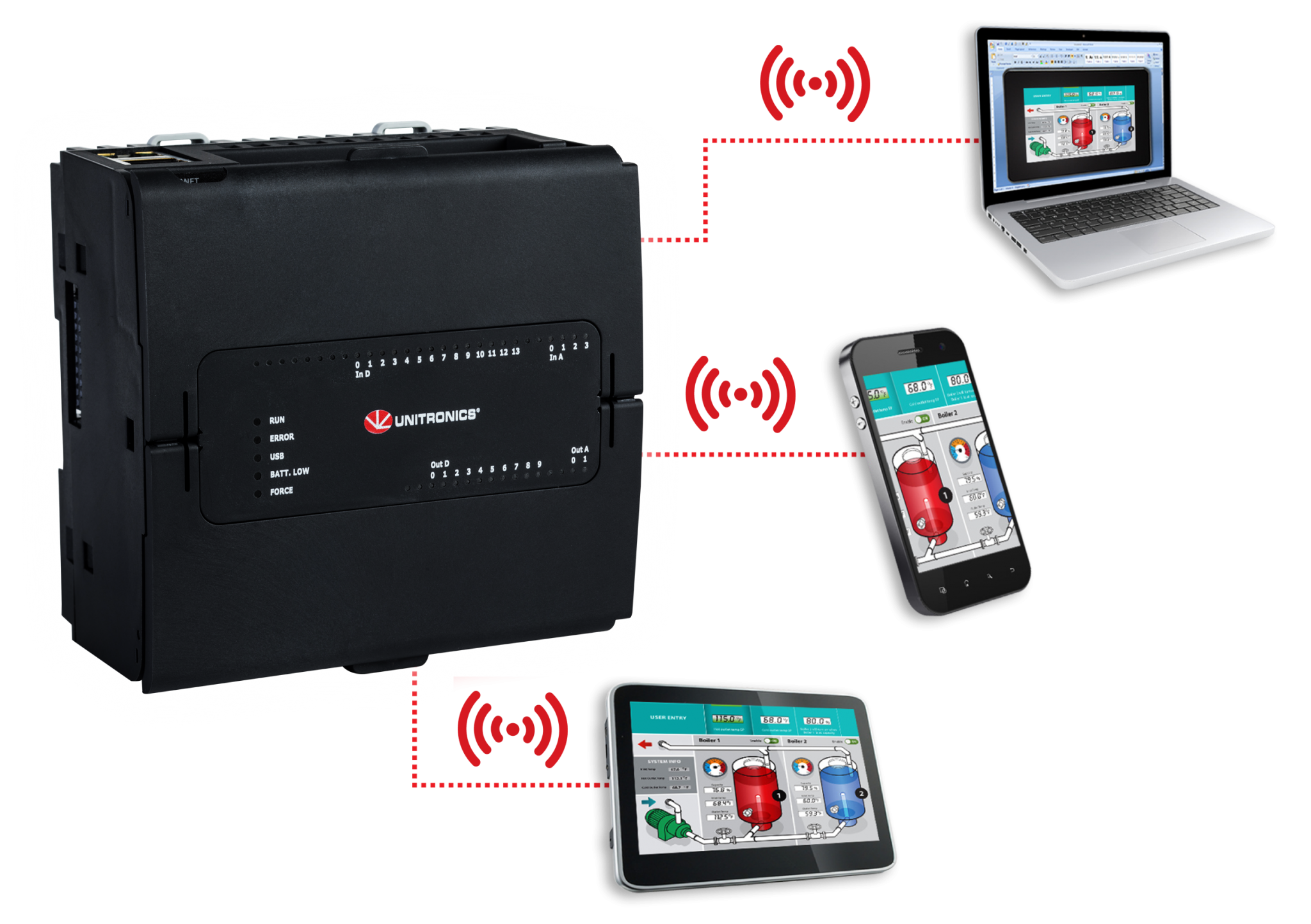 L'Unistream® USC est un Automate robuste doté d’un nouveau concept d'IHM virtuelle. Il intègre une puissante API multifonction offrant aux utilisateurs un support de communication avancé, une variété de configurations d'E/S intégrées et une IHM virtuelle.