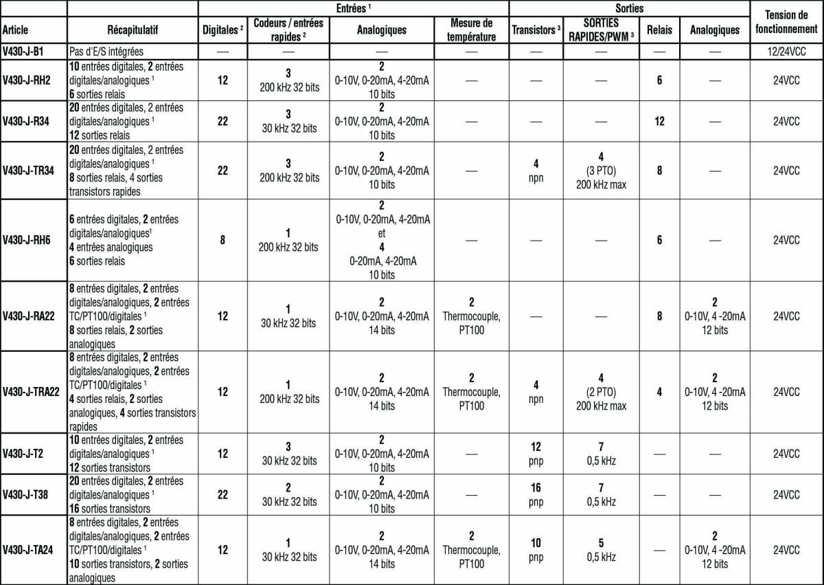 3 Le nombre total de sorties digitales indiqué tient compte des sorties rapides.